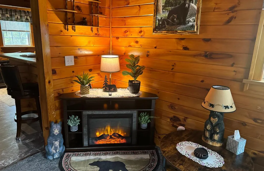 Der Innenraum ist mit einem Sofa sowie Satelliten-TV und einem Flachbildfernseher mit Satellitenkanälen ausgestattet. Diese Villa besteht aus einer Sitzecke und einer Essecke und empfängt Gäste mit einem Bügeleisen/Bügelbrett und einer Klimaanlage. Die The Lazy Bear Cabin verfügt über ein Badezimmer mit einer begehbaren Dusche und einer getrennten Toilette. Ein Haartrockner, Badelaken und Hausschuhe sorgen ebenfalls für Ihren Komfort.